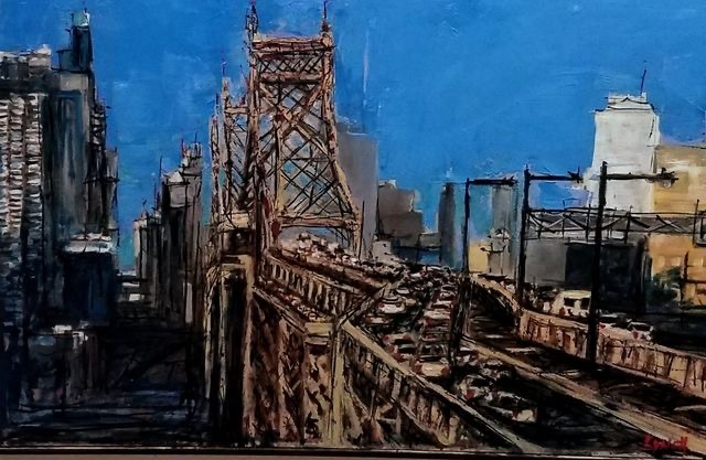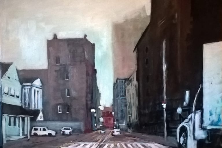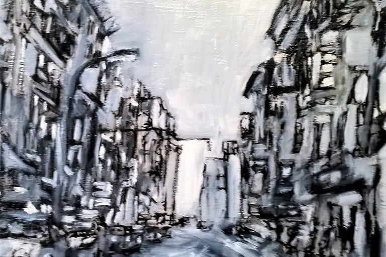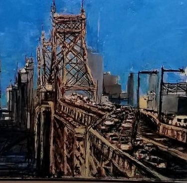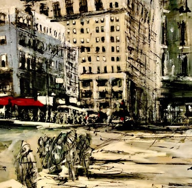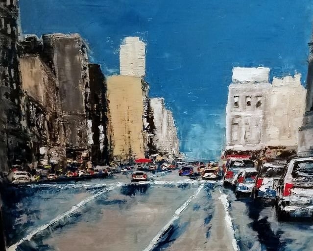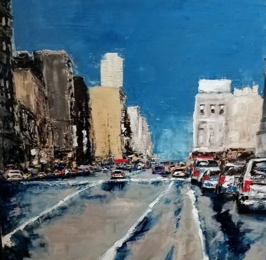 I began painting with oils on large canvases, drawn to abstract forms and the raw energy of cityscapes.