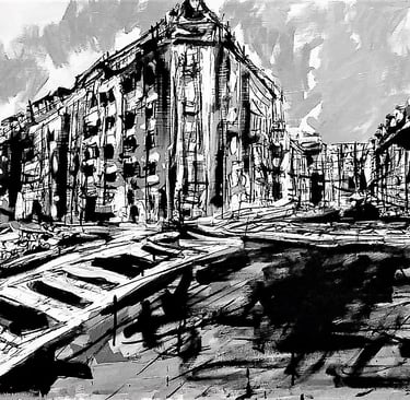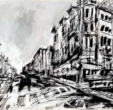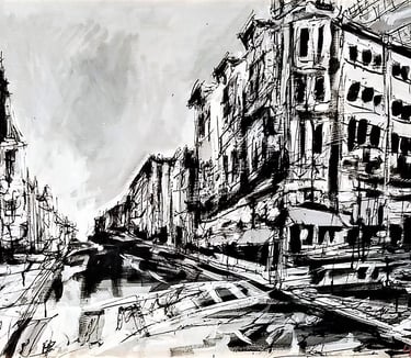 I began painting with oils on large canvases, drawn to abstract forms and the raw energy of cityscapes.